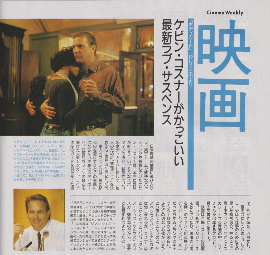 『ボディガード』はケビン・コスナー(Kevin Costner)とホイットニー・ヒューストン(Whitney Houston)が主演。『遥かなる大地へ』は、トム・クルーズ(Tom Cruise)とニコール・キッドマン(Nicole Kidman)の共演。ごめんなさいね、敬意を評したいが、敬称略で――。どなたもアメリカを代表する大スターばかりで、今となっては敬服する次第である。
