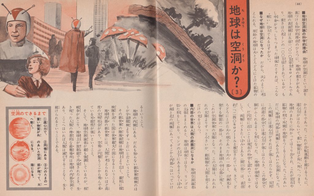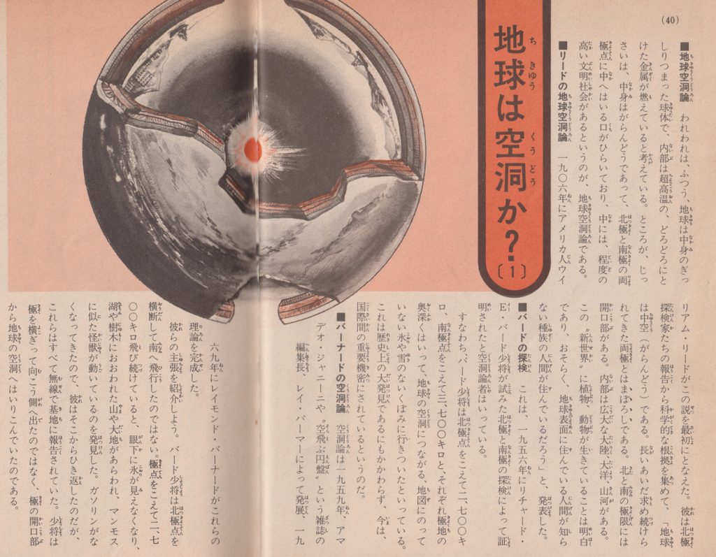 「地球は空洞か?」では、6ページにわたって「地球空洞説」が詳細に論述されている。これらを要約してここにまとめてみたい。